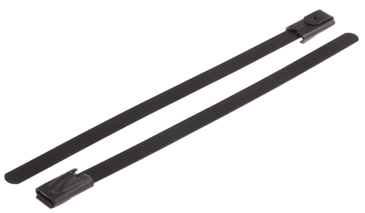 This is Black Polyester Coated Stainless Steel Roller Ball Cable Tie 100mm x 4.6 mm manufactured by RS Pro. The manufacturer part number is 743-6184. It has a maximum operating temperature of +150°c. The product is made from highly stable and reliable polyester coated stainless steel. The product has an added tensile strength of 436.1n. Furthermore, the product is 4.6 mm wide. Its accurate length is 100mm. Whereas, the minimum operating temperature of the product is -80°c. It comes in roller ball configuration. Available in 100 quantity.