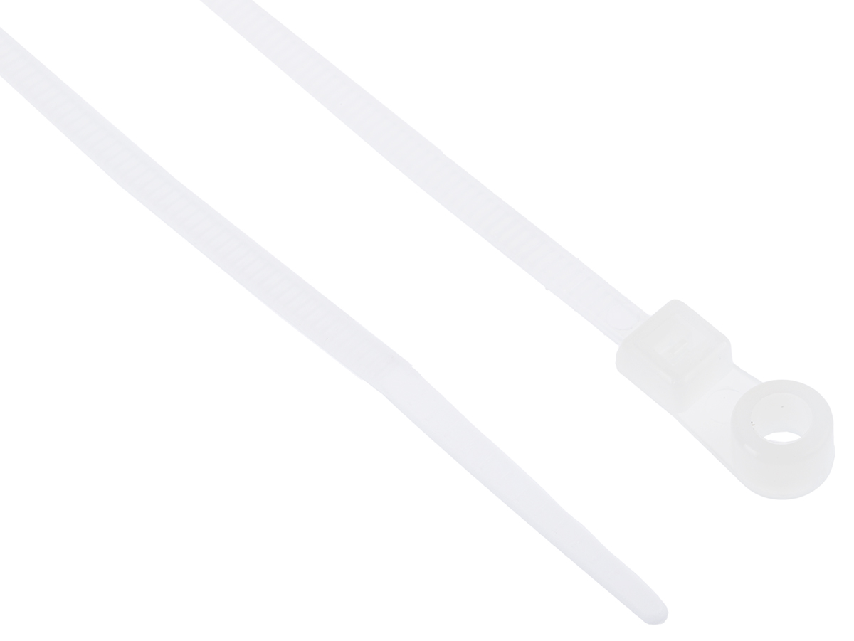 This is Natural Nylon Screw Mount Cable Tie 113mm x 2.5 mm manufactured by RS Pro. The manufacturer part number is 601-079. It has a maximum operating temperature of +85°c. The product is made from highly stable and reliable nylon 66. The product has an added tensile strength of 78.4n. Furthermore, the product is 2.5 mm wide. Its accurate length is 113mm. Whereas, the minimum operating temperature of the product is -40°c. It comes in screw mount configuration. Available in 100 quantity.