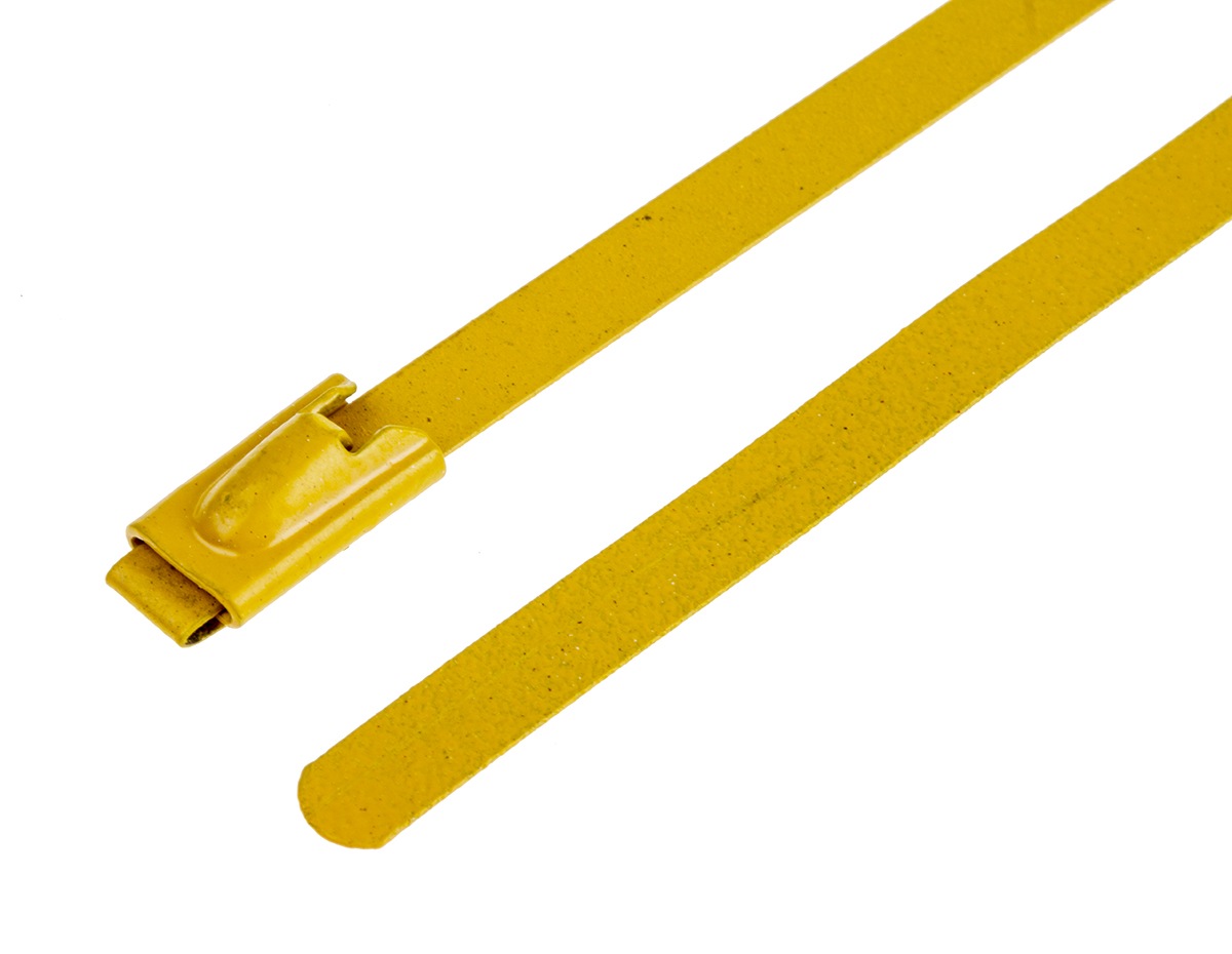 This is Yellow Polyester Coated Stainless Steel Roller Ball Cable Tie 150mm x 4.6 mm manufactured by RS Pro. The manufacturer part number is 743-6241. It has a maximum operating temperature of +150°c. The product is made from highly stable and reliable polyester coated stainless steel. The product has an added tensile strength of 436.1n. Furthermore, the product is 4.6 mm wide. Its accurate length is 150mm. Whereas, the minimum operating temperature of the product is -80°c. It comes in roller ball configuration. Available in 100 quantity.