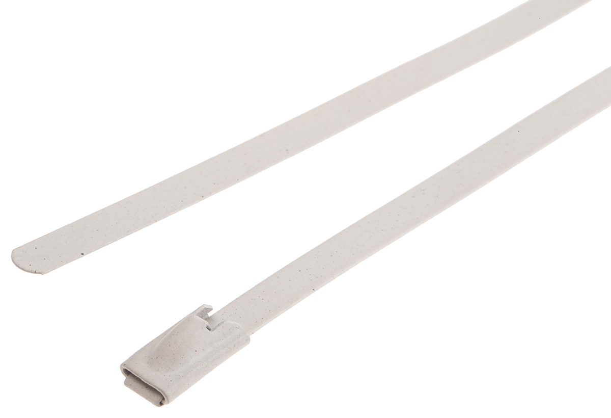This is White Polyester Coated Stainless Steel Roller Ball Cable Tie 150mm x 4.6 mm manufactured by RS Pro. The manufacturer part number is 743-6314. It has a maximum operating temperature of +150°c. The product is made from highly stable and reliable polyester coated stainless steel. The product has an added tensile strength of 436.1n. Furthermore, the product is 4.6 mm wide. Its accurate length is 150mm. Whereas, the minimum operating temperature of the product is -80°c. It comes in roller ball configuration. Available in 100 quantity.