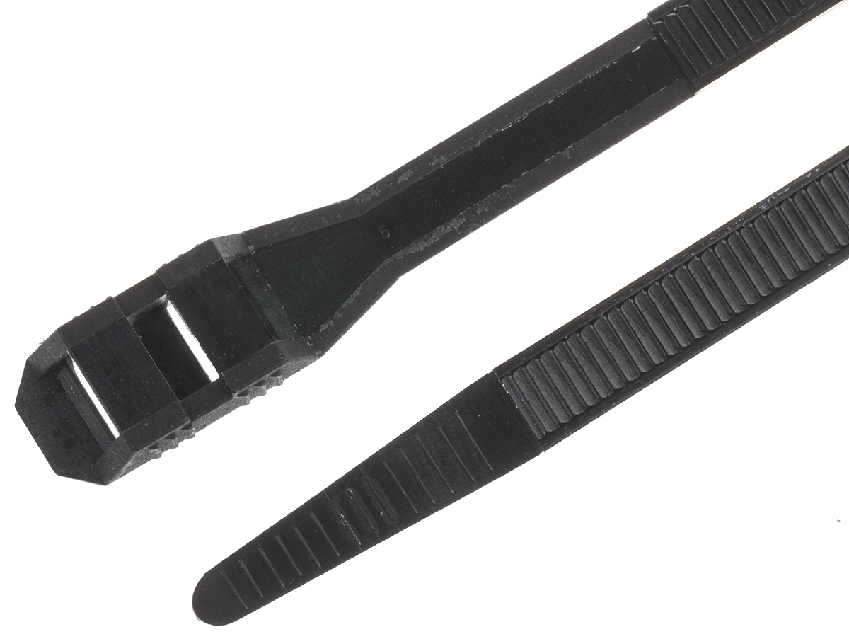 This is Black Nylon Double Locking Cable Tie Cable Tie 265mm x 9 mm manufactured by RS Pro. The manufacturer part number is 666-4688. The product is made from highly stable and reliable nylon 66. The product has an added tensile strength of 539n. Furthermore, the product is 9 mm wide. Its accurate length is 265mm. It comes in double locking configuration. Available in 100 quantity.