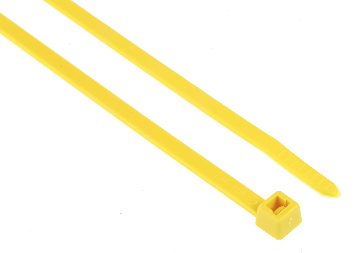 This is Yellow Cable Tie Nylon 200mm x 4.6 mm manufactured by HellermannTyton. The manufacturer part number is 111-04805 T50R-PA66-YE. The product t50r, is a highly preferred choice for users. The product is made from highly stable and reliable nylon 66. The product has an added tensile strength of 225n. Furthermore, the product is 4.6 mm wide. Its accurate length is 200mm. Whereas, the minimum operating temperature of the product is -40°c. It has a maximum operating temperature of +85°c. It comes in non-releasable configuration. Available in 100 quantity.