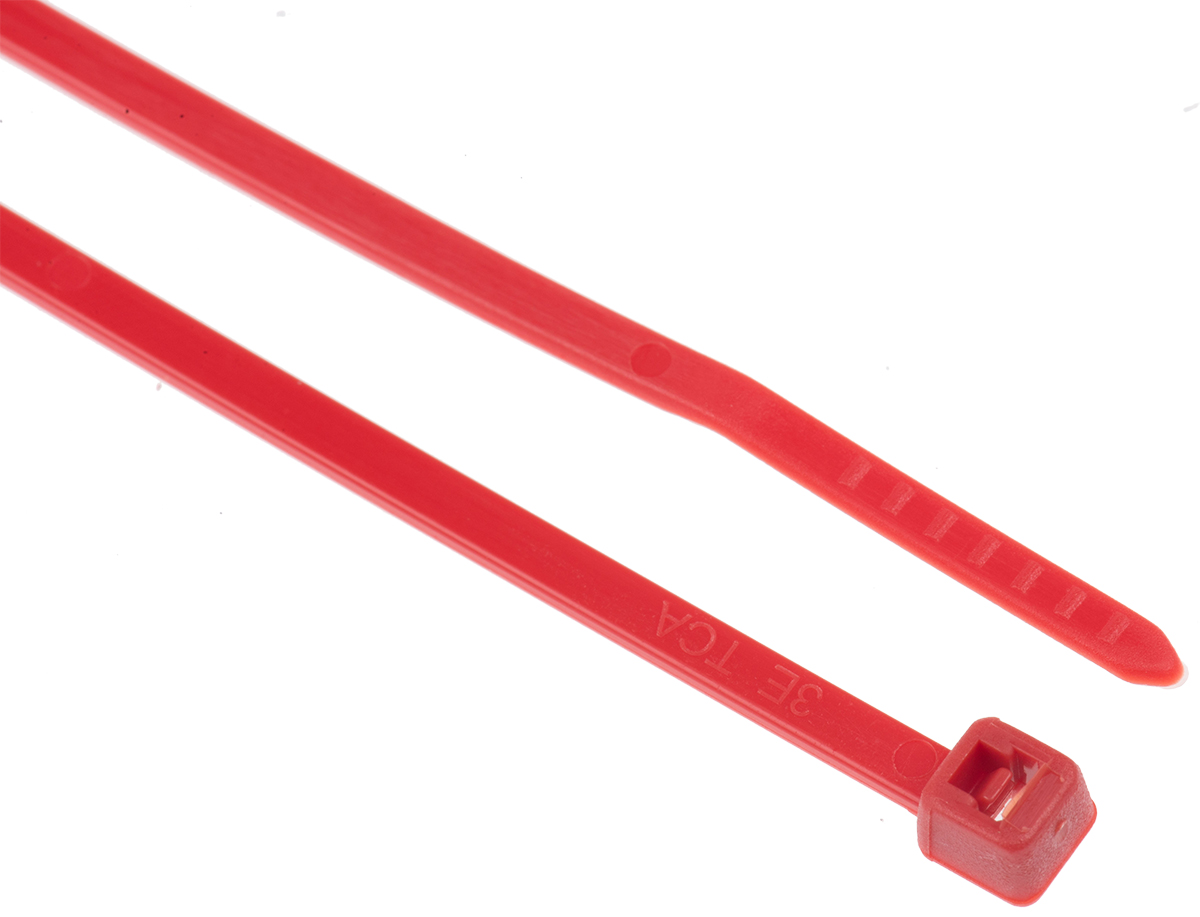 This is Red Cable Tie Nylon 100mm x 2.5 mm manufactured by HellermannTyton. The manufacturer part number is 111-01812 T18R-PA66-RD. The product t18r, is a highly preferred choice for users. The product is made from highly stable and reliable nylon 66. The product has an added tensile strength of 80n. Furthermore, the product is 2.5 mm wide. Its accurate length is 100mm. Whereas, the minimum operating temperature of the product is -40°c. It has a maximum operating temperature of +85°c. It comes in non-releasable configuration. Available in 100 quantity.
