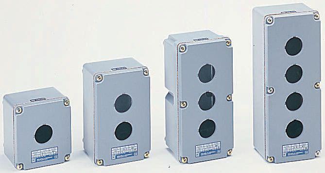 This is IP66 2 way metal pushbutton enclosure manufactured by Schneider Electric. The manufacturer part number is 9001TY2. The given dimensions of the product include 91.9 x 89.7 x 146.1mm. The product 9001t, is a highly preferred choice for users. The product is made from highly stable and reliable aluminium. In addition, the height is 146.1mm. Furthermore, the product is 89.7 mm wide.