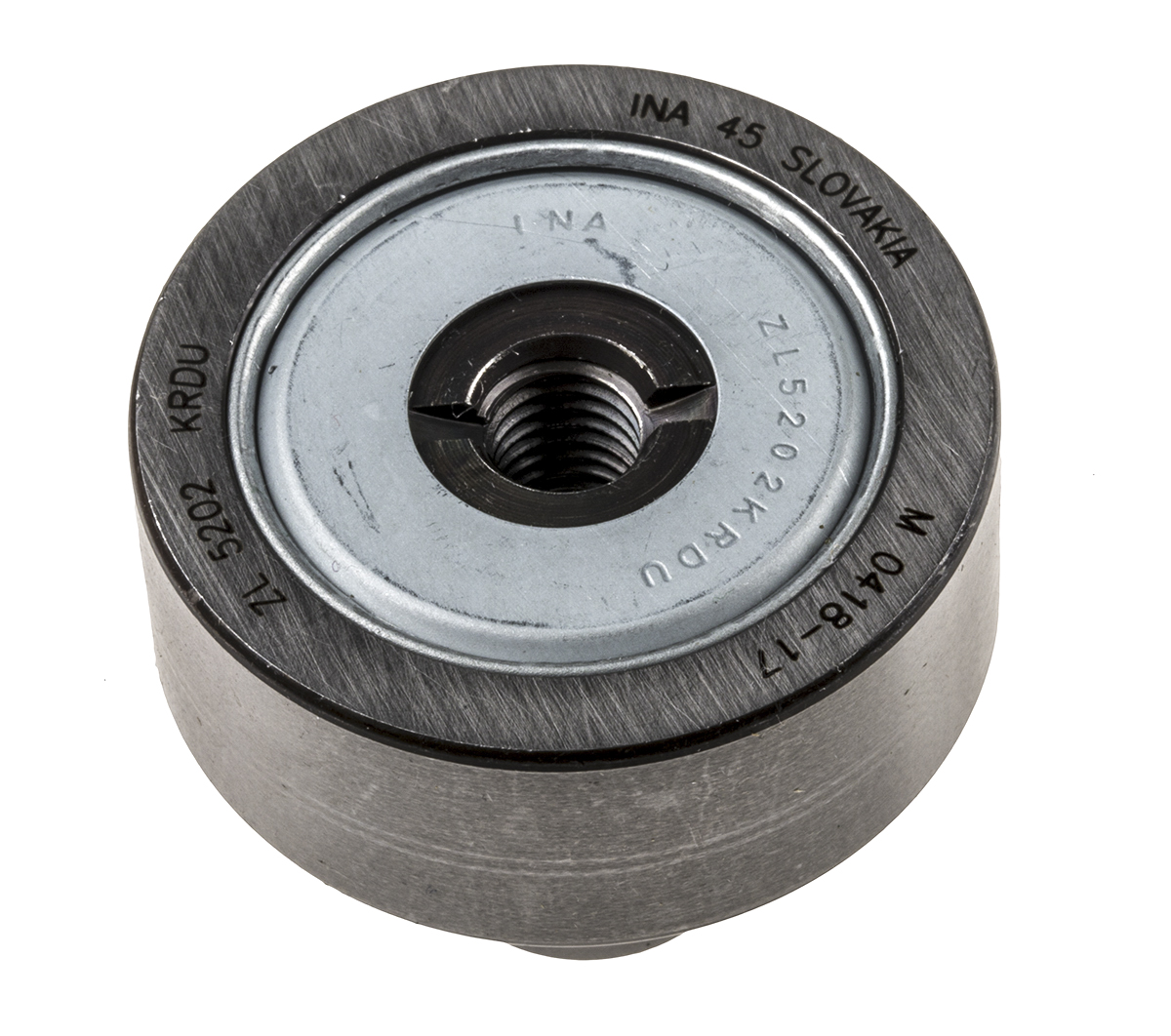 This is Stud Track Roller 16mm ID 40mm OD manufactured by INA. The manufacturer part number is ZL5202-DRS. It comes in stud configuration.