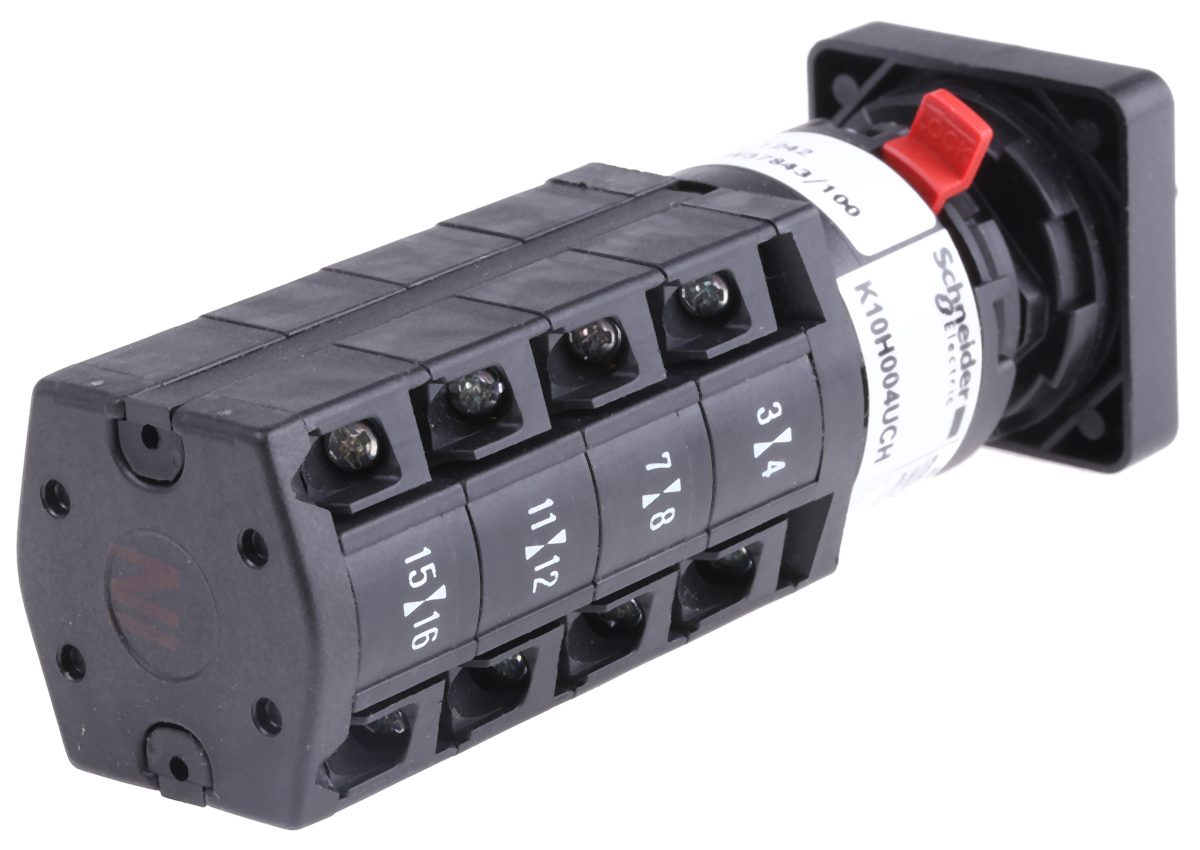 This is 3 positions 60° Rotary Switch 10 A Handle Stay Put manufactured by Schneider Electric. The manufacturer part number is K10H004UCH.