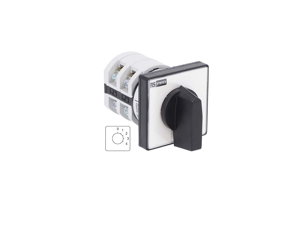 This is 1P 5 Position Rotary Cam Switch 690 V 16A manufactured by RS PRO. The manufacturer part number is 208-3902. The given dimensions of the product include 48 x 48mm. Furthermore, the product is 48mm wide. Its accurate length is 48mm. The product carries possible position value of 5.