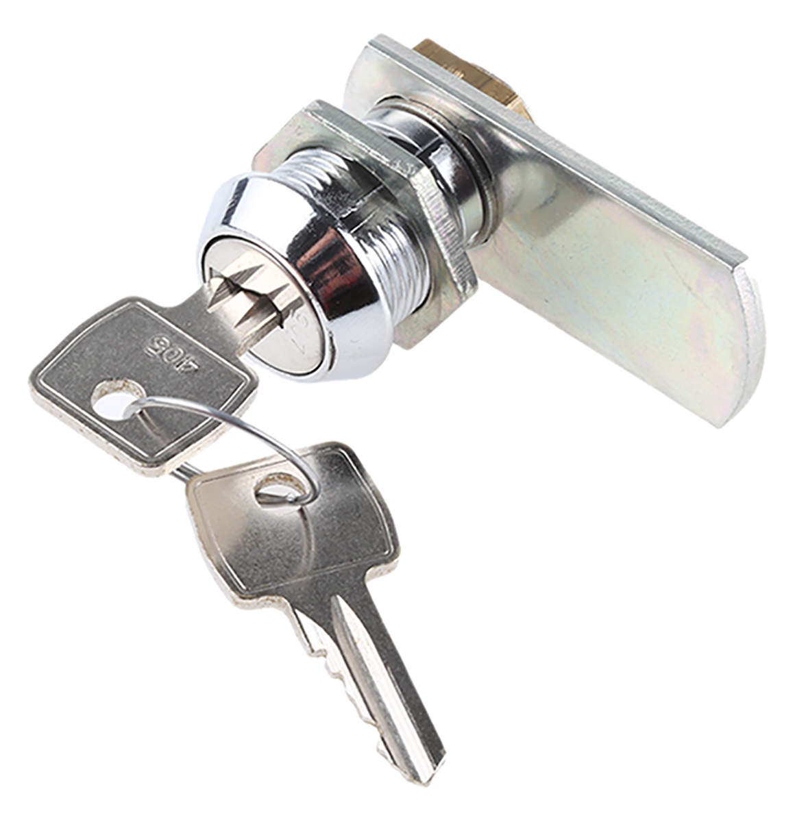 Camlocks Each lock is supplied with 2 keys that turn 180° to the right. These locks are divided into groups of 3 different body lengths: 13; 19; 33 mm. For each length there is: - one lock with one twin entry key offering up to 500 different combinations. - while other models have key combinations that are standard within the electrical industry: 405; 455; 1242E; 2433A. Shiny chrome finish and stainless steel cover.