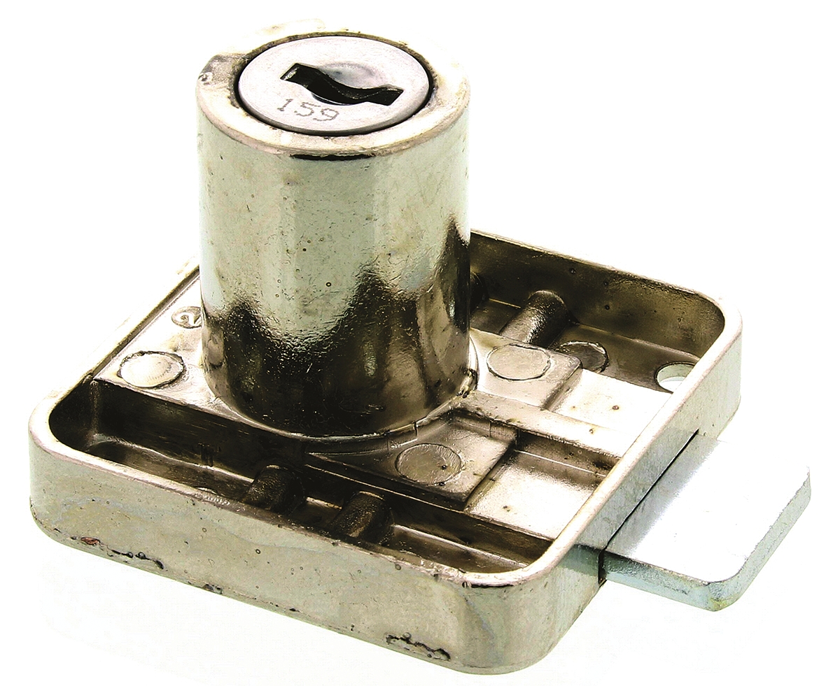 Lowe and Fletcher 5956037 Budget Rim Lock Wooden furniture lock suitable for drawers and cupboards Features and Benefits Key free in locked/unlocked position 200 combinations 38 x 38mm body Bright nickel finish