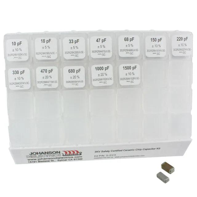 This is manufactured by Johanson Dielectrics Inc.. The manufacturer part number is S-SY3. It is assigned with possible HTSUS value of 8532.24.0020. The product is rohs3 compliant. It features ±5%, ±10%, ±20% of tolerance value. It also exhibits voltage rating of 250vac. In addition, it is reach unaffected. The product is widely employed in safety. It is shipped in case. Its typical moisture sensitivity level is 1 (unlimited). It has a long 7 weeks standard lead time. Available in 240 pieces (12 values - 20 each) quantity. The ceramic is designed to provide robust applications in a variety of specific settings. The product is available in surface mount, mlcc configuration. The product sc, is a highly preferred choice for users. The product is designated with the ear99 code number