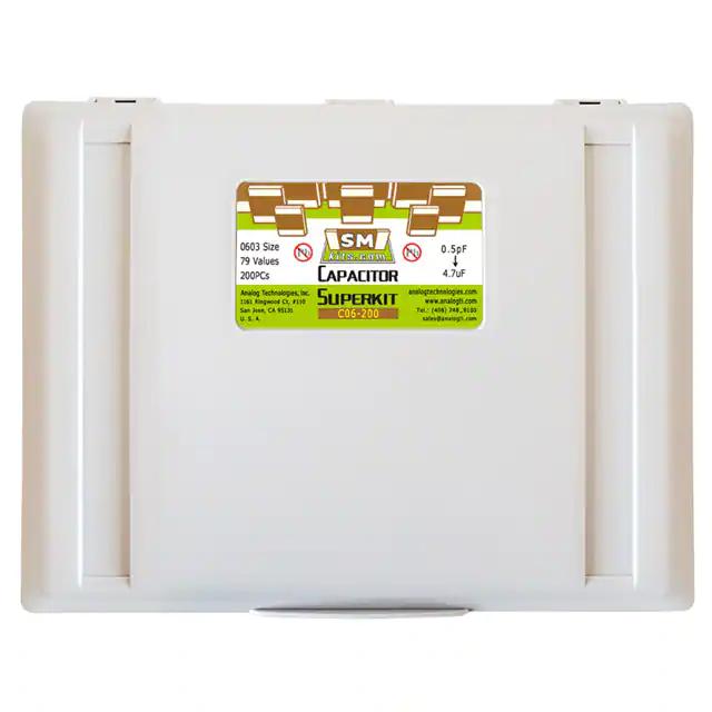 This is manufactured by Analog Technologies. The manufacturer part number is C06-200. It is assigned with possible HTSUS value of 8532.24.0020. The product is rohs compliant. It features ±0.25pf, ±5%, ±10%, ±20% of tolerance value. It also exhibits voltage rating of 6.3v, 10v, 16v, 50v. In addition, it is reach unaffected. It is shipped in box. Its typical moisture sensitivity level is 1 (unlimited). Available in 200 pieces (assorted per value) quantity. The ceramic is designed to provide robust applications in a variety of specific settings. The product is available in surface mount configuration. The product is designated with the ear99 code number