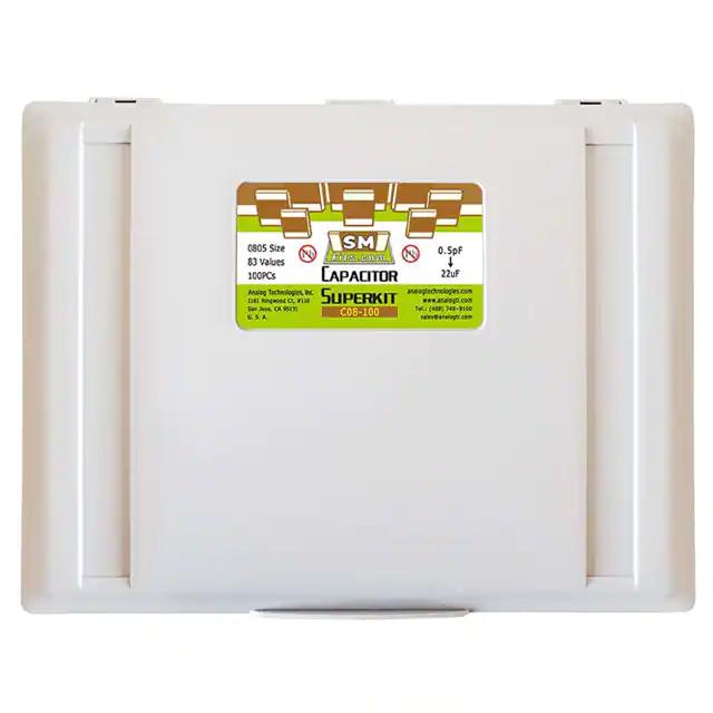 This is manufactured by Analog Technologies. The manufacturer part number is C08-100. It is assigned with possible HTSUS value of 8532.24.0020. The product is rohs compliant. It features ±0.25pf, ±5%, ±10%, ±20% of tolerance value. It also exhibits voltage rating of 6.3v, 16v, 25v, 50v. In addition, it is reach unaffected. It is shipped in box. Its typical moisture sensitivity level is 1 (unlimited). Available in 100 pieces (assorted per value) quantity. The ceramic is designed to provide robust applications in a variety of specific settings. The product is available in surface mount configuration. The product is designated with the ear99 code number