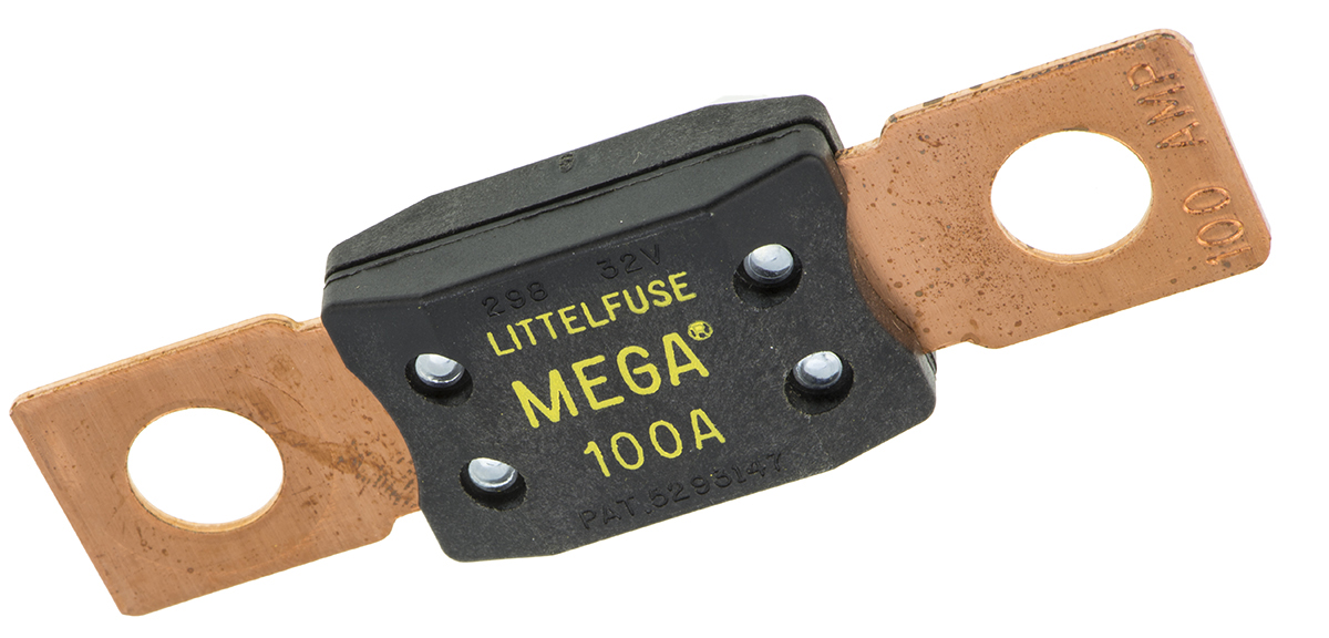 This is 100A Yellow Bolt Down Automotive Blade Fuse 32V dc manufactured by Littelfuse. The manufacturer part number is 0298100.ZXEH. The product has a current rating of 100a. Moreover, the product has a nominal 32v dc voltage rating. The product's body is nicely designed from ppa materials. In addition, the height is 10.67mm. Furthermore, the product is 19.05mm wide. Its accurate length is 68.58mm. It integrates a bolt down fuse type. Whereas, the minimum operating temperature of the product is -40°c. It has a maximum operating temperature of +125°c.