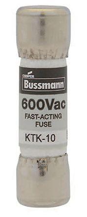 This is LIMITRON KTK 10A Melamine Cartridge Fuse F 10 x 38mm manufactured by Cooper Bussmann. The manufacturer part number is KTK-10. The product has a current rating of 10 a. Moreover, the product has a nominal 600 v ac voltage rating. The product ktk, is a highly preferred choice for users. A fuse with a 10 x 38mm size. The product's body is nicely designed from melamine materials.