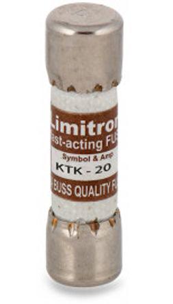 This is Cartridge Fuse F 20A 10.3 x 38.1mm manufactured by Cooper Bussmann. The manufacturer part number is KTK-20. Its diameter is 10mm. The product has a current rating of 20a. Moreover, the product has a nominal 600v ac voltage rating. The product ktk, is a highly preferred choice for users. A fuse with a 10 x 38mm size. The product's body is nicely designed from melamine materials.