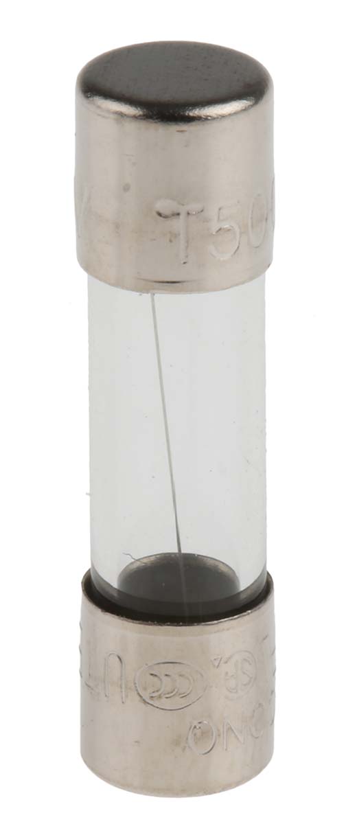 This is Cartridge Fuse T 500mA 5 x 20mm manufactured by RS Pro. The manufacturer part number is 563-633. The product has a current rating of 500ma. Moreover, the product has a nominal 250v ac voltage rating. A fuse with a 5 x 20mm size. The product's body is nicely designed from glass materials.