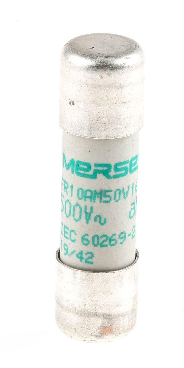 This is Ceramic Cartridge Fuse 16A 10 x 38mm manufactured by Mersen. The manufacturer part number is F214618. The product has a current rating of 16a. Moreover, the product has a nominal 500v ac voltage rating. A fuse with a 10 x 38mm size. The product's body is nicely designed from ceramic materials.