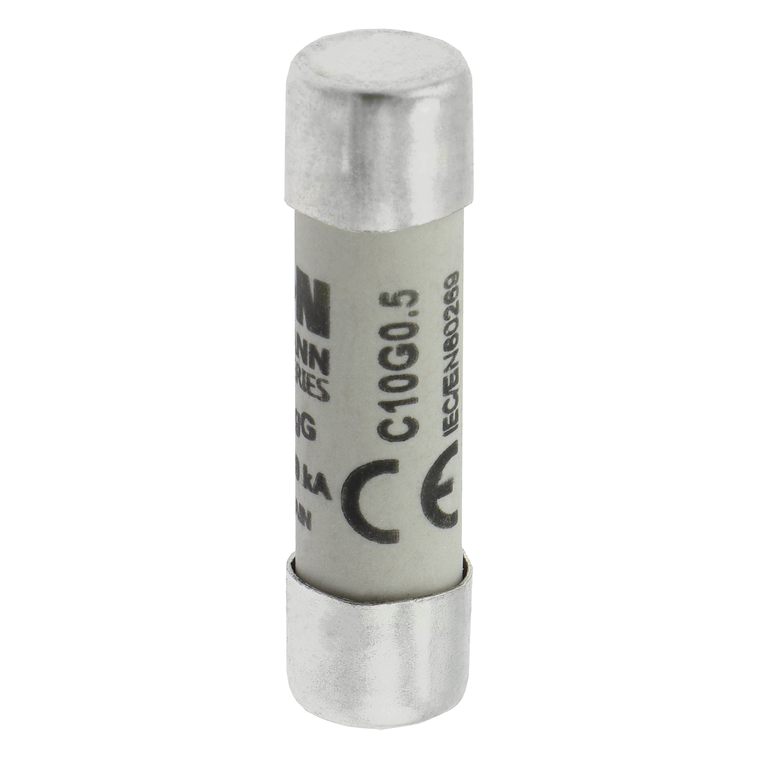 This is 500mA Ceramic Cartridge Fuse 10 x 38mm manufactured by Eaton. The manufacturer part number is C10G0-5. The product has a current rating of 500ma. Moreover, the product has a nominal 500v ac voltage rating. The product eaton bussman, is a highly preferred choice for users. A fuse with a 10 x 38mm size. The product's body is nicely designed from ceramic materials.