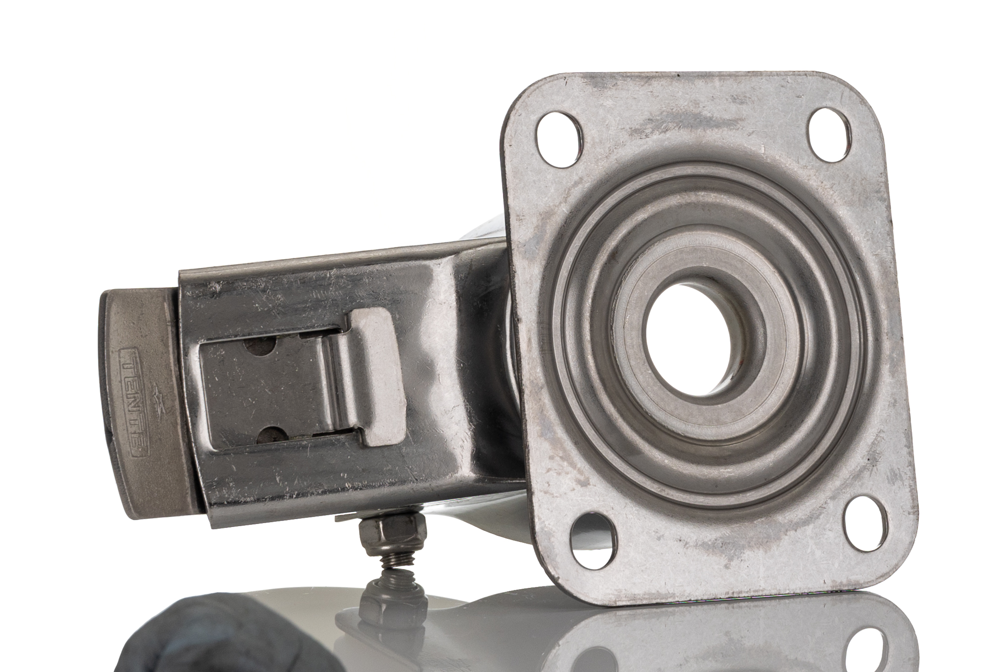 This is Swivel Castor 200kg manufactured by Tente. The manufacturer part number is 8477UOO100P62. The product is available in plate configuration. Allows braked swivel rotation.
