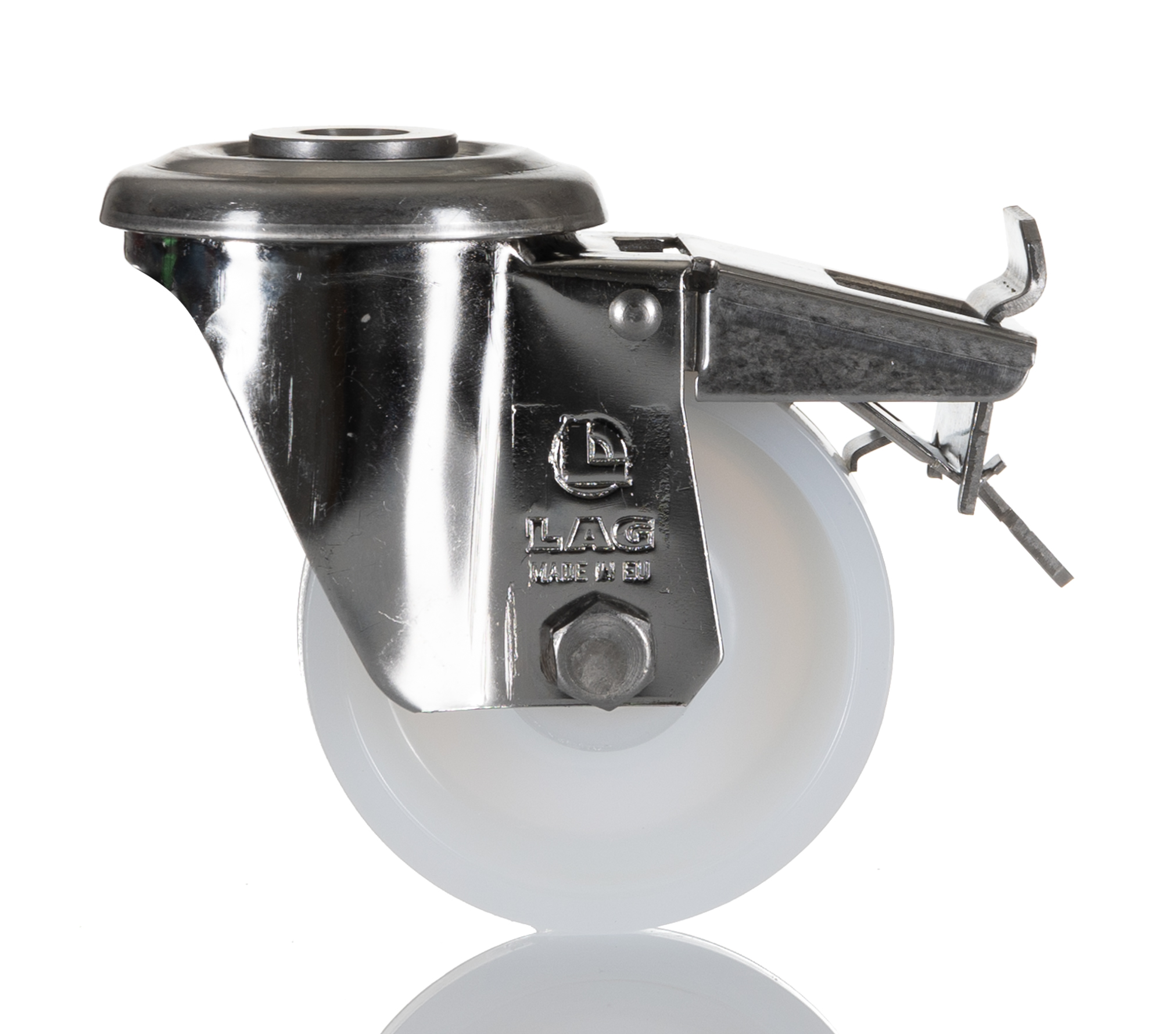 This is Stem Swivel Castors 150kg Polyamide tyres manufactured by LAG. The manufacturer part number is 17227 FR HB. The product is available in single bolt configuration. Allows swivel rotation.