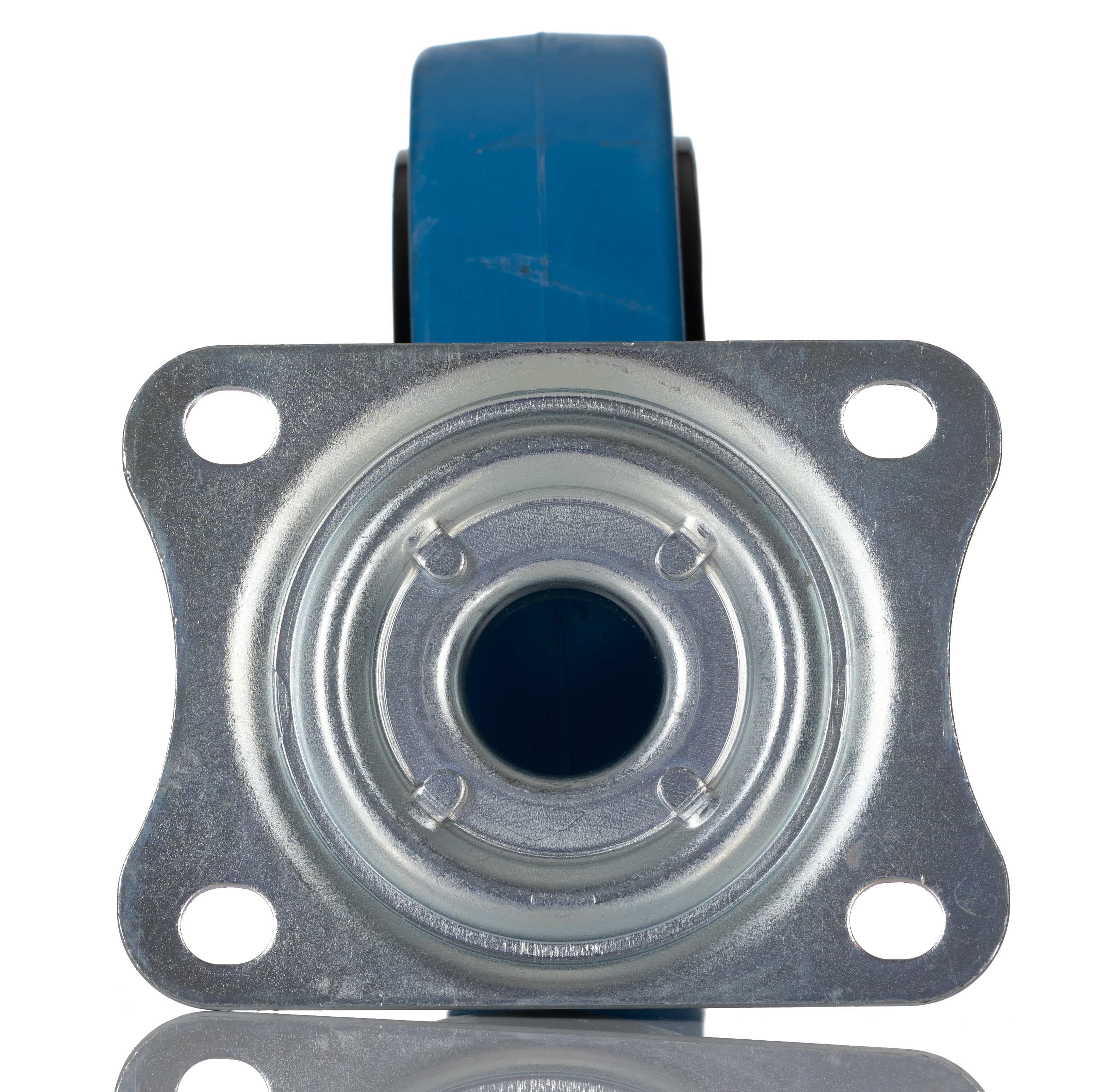 This is Swivel Castor 250kg manufactured by Tente. The manufacturer part number is 3470UFR125P62BLUE. The product is available in plate configuration. Allows swivel rotation.