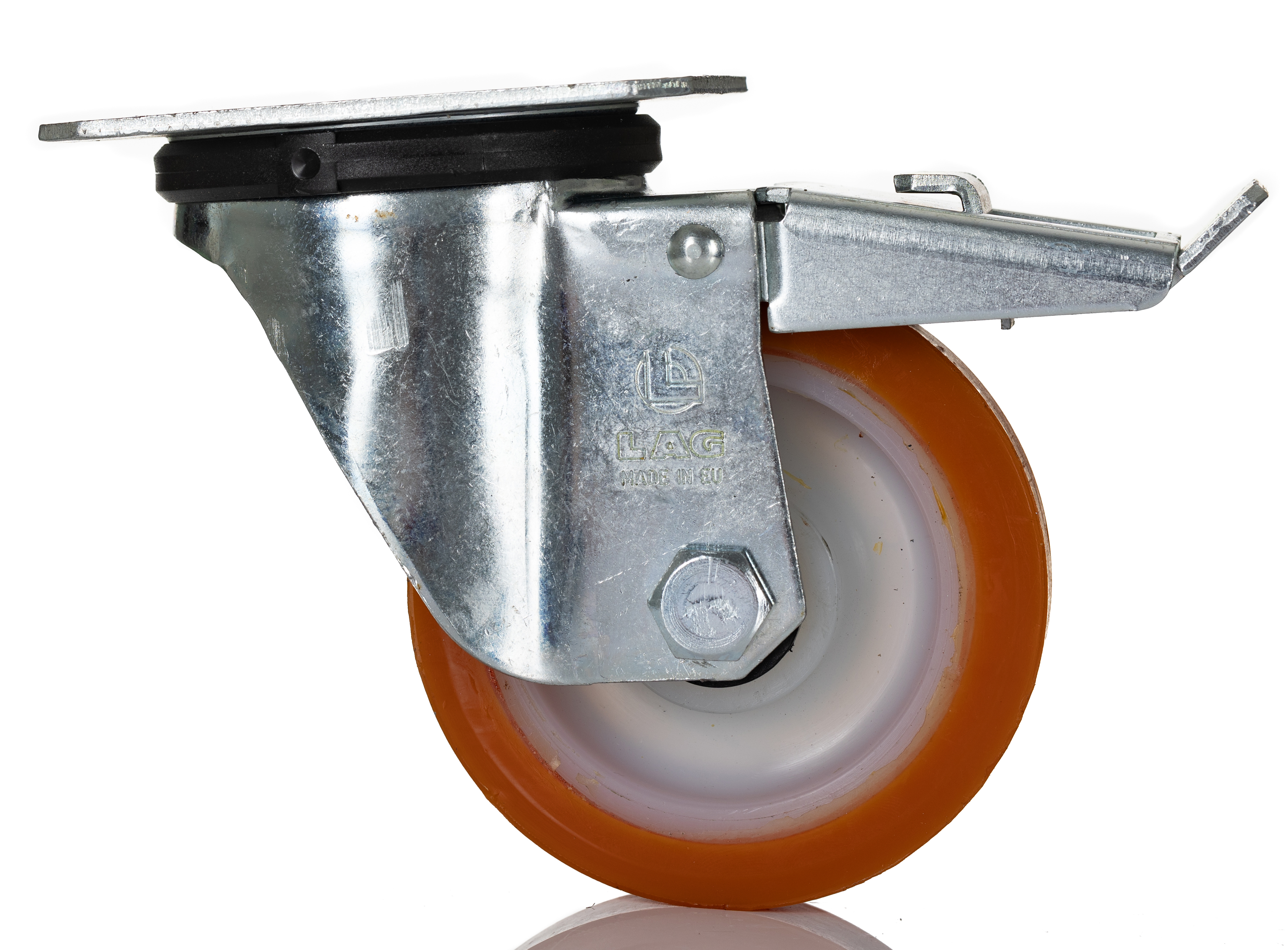 This is Swivel Castor 20029 FR 200kg manufactured by LAG. The manufacturer part number is 20029 FR. The product is available in plate configuration. Allows braked swivel rotation.
