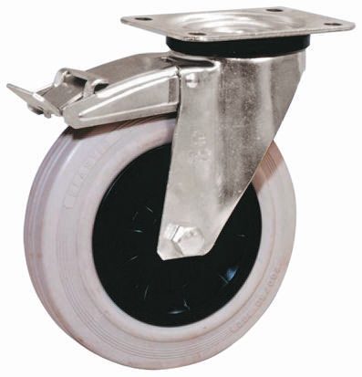 This is Swivel Castor 85kg manufactured by LAG. The manufacturer part number is 13908G FR. The product is available in plate configuration. Allows braked swivel rotation.