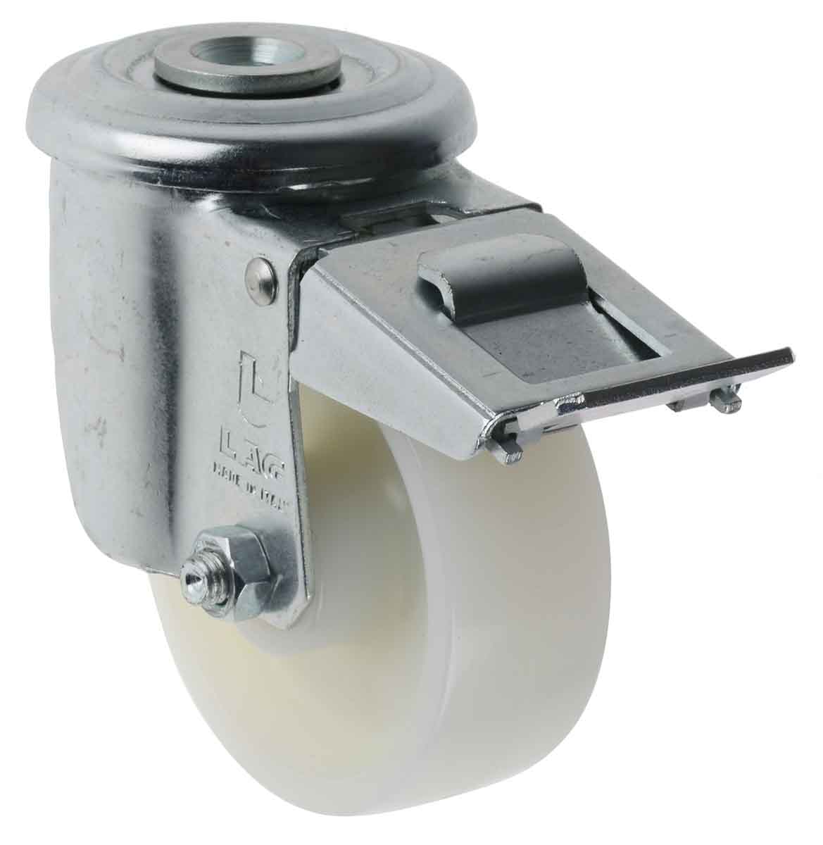 This is Stem Swivel Castors 120kg Polyamide tyres manufactured by LAG. The manufacturer part number is 18962 FR FB. The product is available in single bolt configuration. Allows swivel rotation.