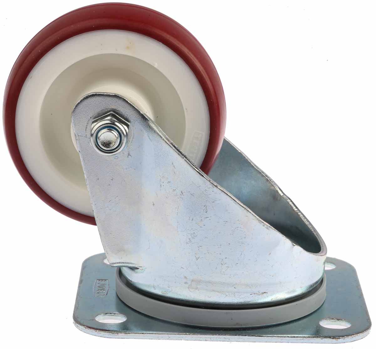 This is Swivel Castor 150kg manufactured by Tente. The manufacturer part number is 3470UAR080P62 red. The product is available in plate configuration. Allows swivel rotation.