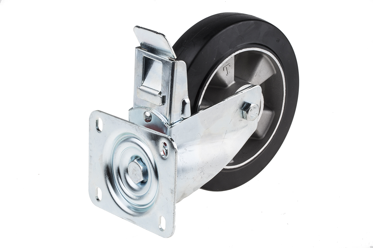 This is Castor Wheel 460kg manufactured by RS Pro. The manufacturer part number is 621-9086. The product is available in plate configuration. Allows braked swivel rotation.