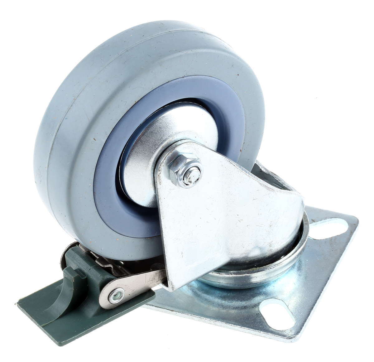 This is Braked Swivel Castor Wheel 60kg Load Capacity 75mm Wheel Diameter manufactured by Guitel Hervieu. The manufacturer part number is 66727. The product is available in plate configuration. The product also features robust galvanised steel housing material. Allows braked swivel rotation.