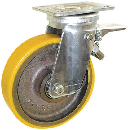 This is Braked Swivel Castor Wheel 700kg Load Capacity 150mm Wheel Diameter manufactured by Guitel Hervieu. The manufacturer part number is 14017953. The product is available in plate configuration. The product also features robust galvanised steel housing material. Allows braked swivel rotation.