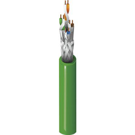 This is Shielded Cat6a Cable LSZH Green manufactured by Belden. The manufacturer part number is 74010NH.00500. The item is shielded with a aluminium foil, tinned copper braid. Its accurate length is 500m.