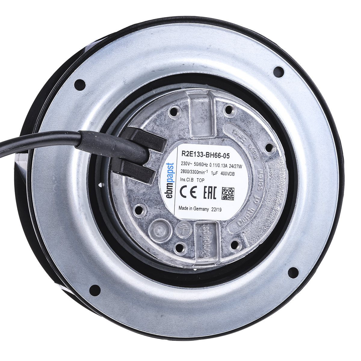 This is Centrifugal Blower 290m³/h 230 V ac (R2E Series) manufactured by ebm-papst. The manufacturer part number is R2E133-BH66-05. The product r2e, is a highly preferred choice for users. This has integrated with a ball, a bearing with long-lasting features. Furthermore, the product is 133mm wide. The product comes in 91mm depth. It has a 290m³/h air flow rate.