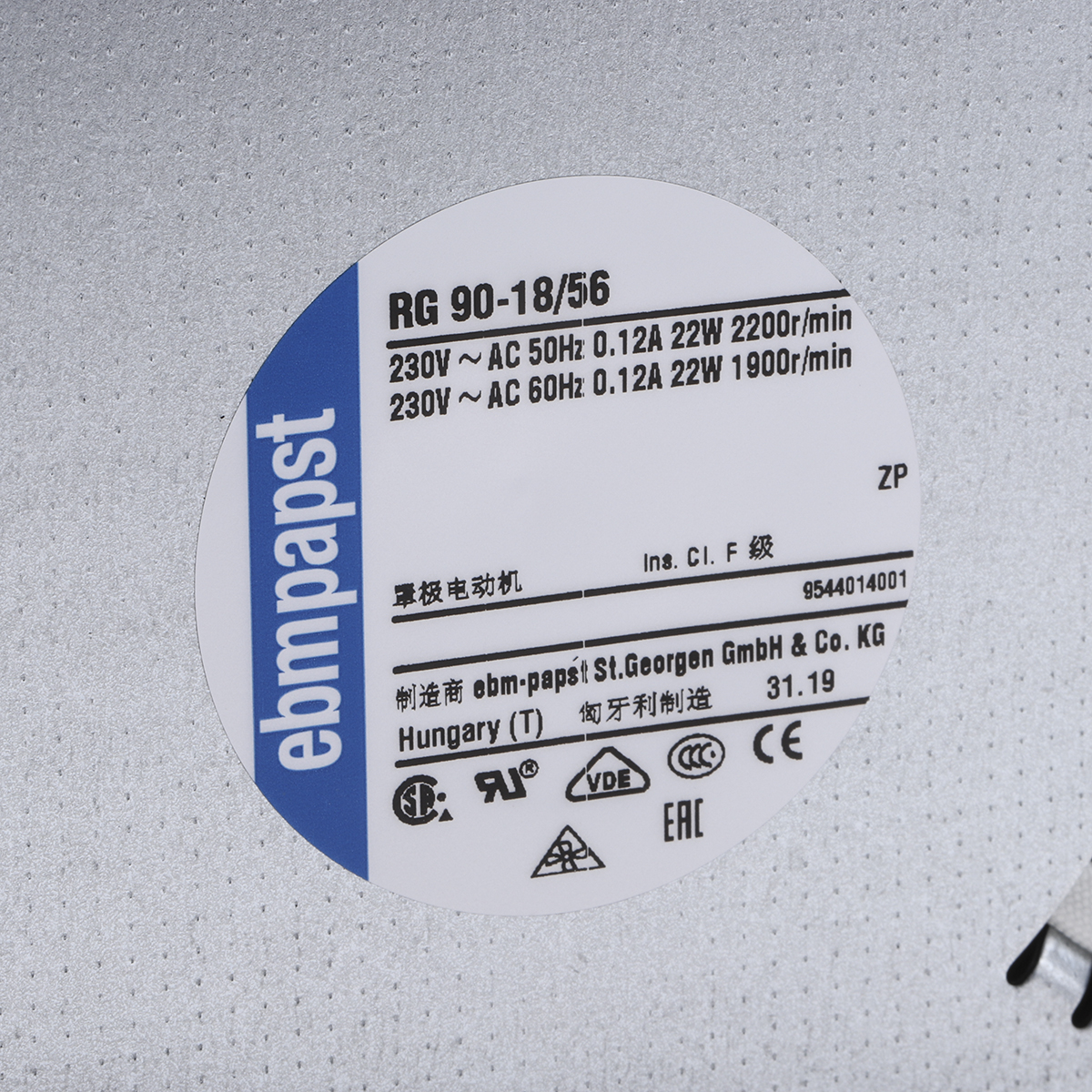 This is Centrifugal Blower 135 x 135 x 38mm 54m³/h 230 V ac (RG90 Series) manufactured by ebm-papst. The manufacturer part number is RG90-18/56. The given dimensions of the product include 135 x 135 x 38mm. The given diameter of mounting hole is 4.3mm. The product rg 90 n, is a highly preferred choice for users. This has integrated with a ball, a bearing with long-lasting features. In addition, the height is 135mm. Furthermore, the product is 135mm wide. The product comes in 38mm depth. It has a 54m³/h air flow rate. It has a 122 x 122mm mounting hole space.