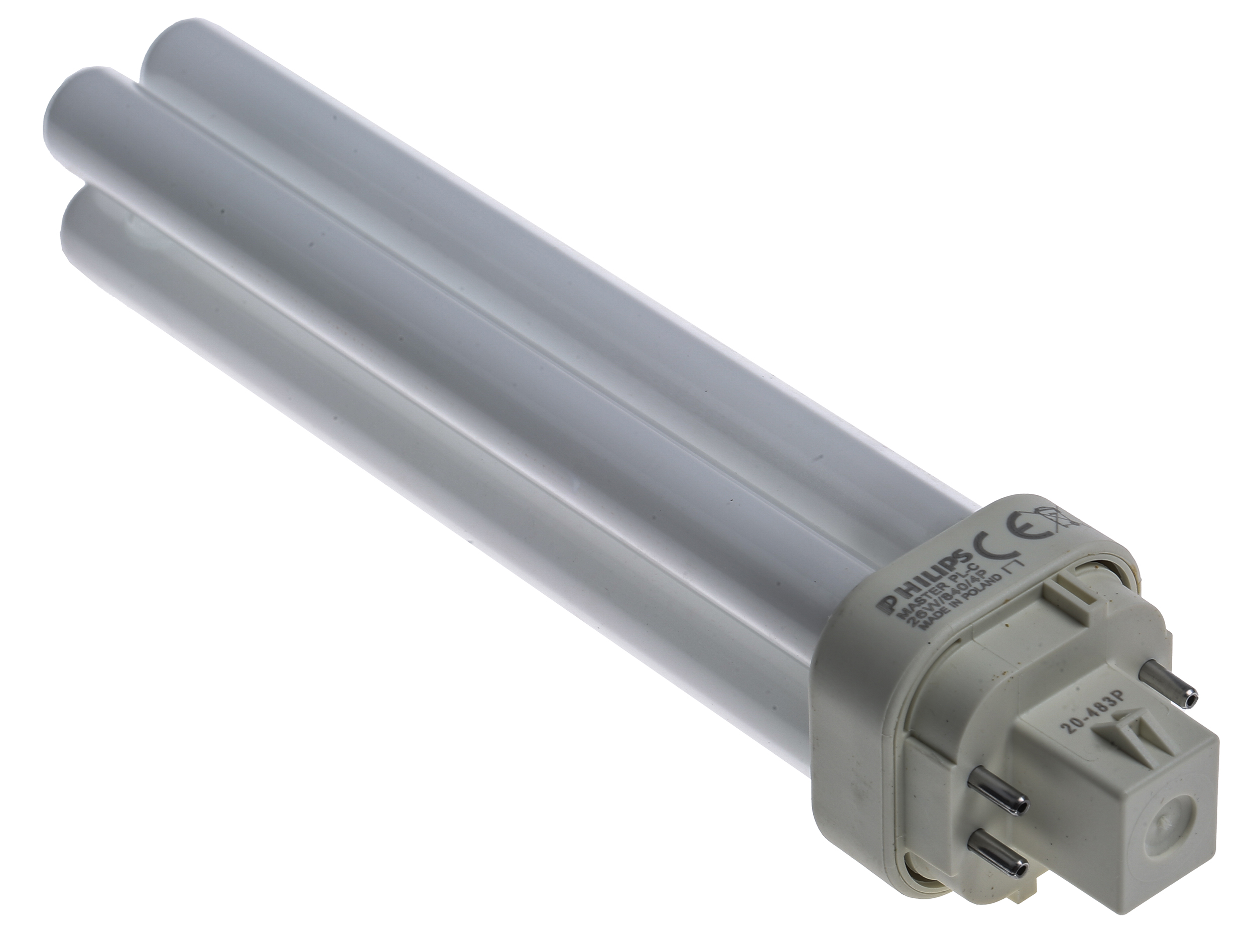 This is 4 Pin Non Integrated Compact Fluorescent Bulbs 26 W 4000K Cool White manufactured by Philips Lighting. The manufacturer part number is 26PLC8404PIN. Its diameter is 27mm. Its accurate length is 164 mm. It is a quad tube product with unique specifications.