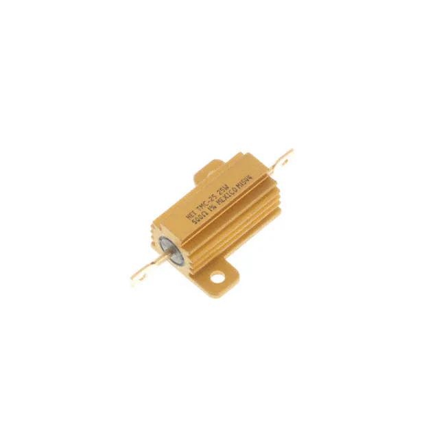 This is manufactured by Vishay Dale. The manufacturer part number is TMC025500R0FE02. It is assigned with possible HTSUS value of 8533.29.0000. The product is rohs3 compliant. The product's mounting feature includes flanges. It exhibits an excellent temperature coefficient of ±20ppm/°c. The product is aluminum, giving it a nice housing coating. The product features power and watts of 25w. Moreover, the product comes in [Package/ Case]. It features ±1% of tolerance value. It is composed of wirewound. It has the maximum seated height of 0.561" (14.25mm) The product has -55°c ~ 250°c operating temperature range. It is shipped in bulk. The product's diameters include 1.062" l x 1.080" w (26.97mm x 27.43mm). It has a long 22 weeks standard lead time. Its typical moisture sensitivity level is not applicable. The splendid features of the product include moisture resistant. It has a common solder lugs lead style. The product tmc, is a highly preferred choice for users. It carries 500 ohms resistance. The product is designated with the ear99 code number