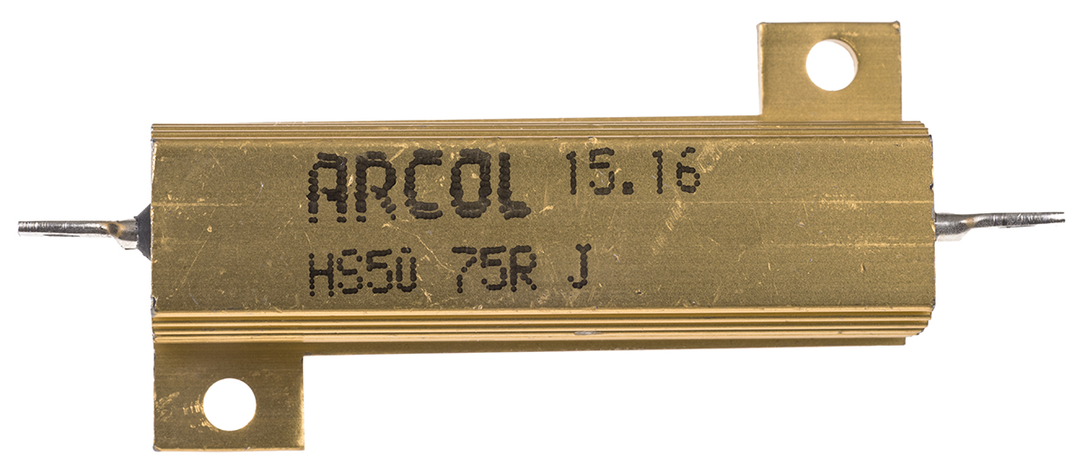 This is HS50 Series Aluminium Housed Axial Wire Wound Panel Mount Resistor 75Ω ±5% 50W manufactured by Arcol. The manufacturer part number is HS50 75R J. The given dimensions of the product include 14.8 x 72.5 x 29.7mm. The product hs50, is a highly preferred choice for users. Moreover, it has axial terminal style. It carries 75ω resistance. It features ±5% of tolerance value. This product use wire wound technology.