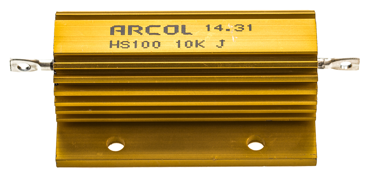 This is HS100 Series Aluminium Housed Axial Wire Wound Panel Mount Resistor 10kΩ ±5% 100W manufactured by Arcol. The manufacturer part number is HS100 10K J. The given dimensions of the product include 24.1 x 88 x 47.5mm. The product hs100, is a highly preferred choice for users. Moreover, it has axial terminal style. It carries 10kω resistance. It features ±5% of tolerance value. This product use wire wound technology.