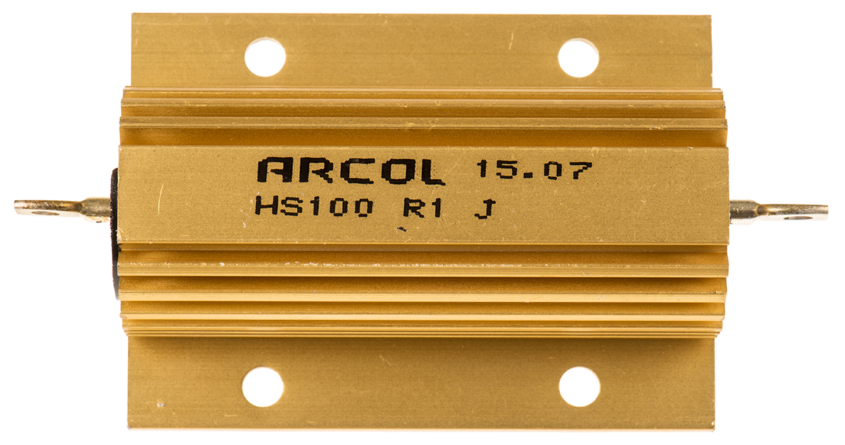 This is HS100 Series Aluminium Housed Axial Wire Wound Panel Mount Resistor 100mΩ ±5% 100W manufactured by Arcol. The manufacturer part number is HS100 R1 J. The given dimensions of the product include 24.1 x 88 x 47.5mm. The product hs100, is a highly preferred choice for users. Moreover, it has axial terminal style. It carries 100mω resistance. It features ±5% of tolerance value. This product use wire wound technology.