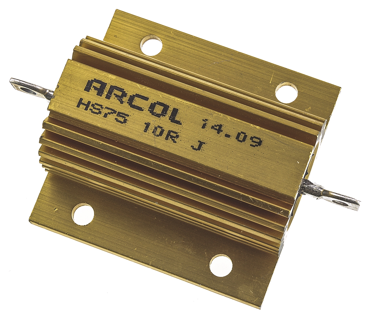 This is HS75 Series Aluminium Housed Axial Wire Wound Panel Mount Resistor 10Ω ±5% 75W manufactured by Arcol. The manufacturer part number is HS75 10R J. The given dimensions of the product include 24.1 x 72 x 47.5mm. The product hs75, is a highly preferred choice for users. Moreover, it has axial terminal style. It carries 10ω resistance. It features ±5% of tolerance value. This product use wire wound technology.