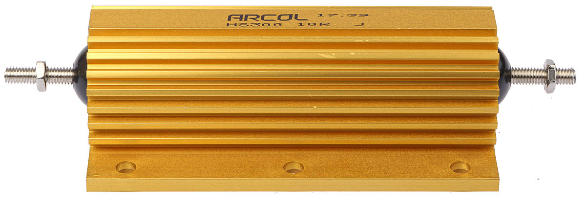 This is HS300 Series Aluminium Housed Axial Wire Wound Panel Mount Resistor 10Ω ±5% 300W manufactured by Arcol. The manufacturer part number is HS300 10R J. The given dimensions of the product include 41.8 x 184.4 x 72.5mm. The product hs300, is a highly preferred choice for users. Moreover, it has axial terminal style. It carries 10ω resistance. It features ±5% of tolerance value. Whereas, the minimum operating temperature of the product is +5°c. It has a maximum operating temperature of +200°c. This product use wire wound technology.