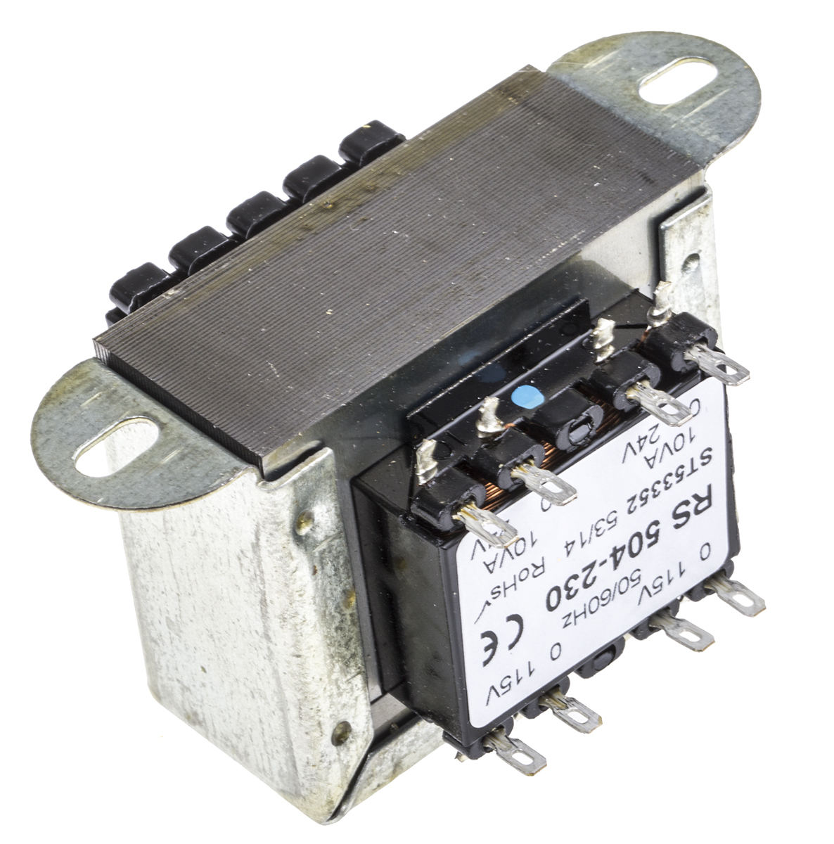 This is 20VA 2 Output Chassis Mounting Transformer 24V ac manufactured by RS Pro. The manufacturer part number is 504-230. Additionally, the product is supplied with 2 outputs. The given dimensions of the product include 59 x 57 x 50mm. The typical product's weight is 550g. Its accurate length is 59mm. Furthermore, the product is 57mm wide. The product comes in 50mm depth. The product is available in clamp mount configuration.
