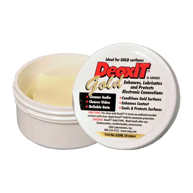 This is manufactured by CAIG Laboratories, Inc.. The manufacturer part number is G50W. It is assigned with possible HTSUS value of 5801.90.2090. The product is rohs compliant. It comes in wipes configuration. In addition, it is reach unaffected. The product is widely employed in electronics. It offers storage features at 120°f (49°c). It is shipped in retail package. Its typical moisture sensitivity level is 1 (unlimited). It has a long 5 weeks standard lead time. The product deoxit® g, is a highly preferred choice for users. The product is available in 44.45mm x 44.45mm size. The product is designated with the ear99 code number