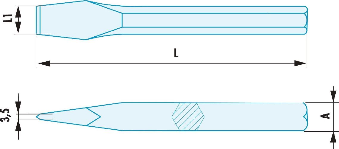 This is Beryllium Copper Flat Chisel 350mm Length 19 mm Blade Width manufactured by Facom. The manufacturer part number is 265.28SR. Its accurate length is 350mm.