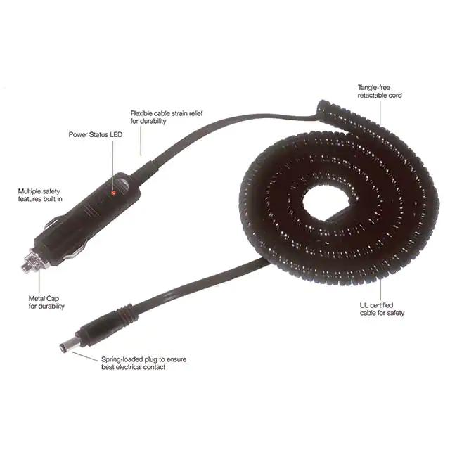 This is manufactured by MPD (Memory Protection Devices). The manufacturer part number is ZA5074. It also exhibits voltage rating of 12 v. It is assigned with possible HTSUS value of 8544.42.9090. It is shipped in bulk. It has a classic black colour. The product is rohs compliant. In addition, it is reach unaffected. Its typical moisture sensitivity level is 1 (unlimited). Specifications include 12' (3.65m) coiled cord, abs, fused, led indicator. It has a long 22 weeks standard lead time. It comes in cable, auto power plug to 2.1mm dc plug configuration. Additionally, the product's output is 5 a The product is designated with the ear99 code number