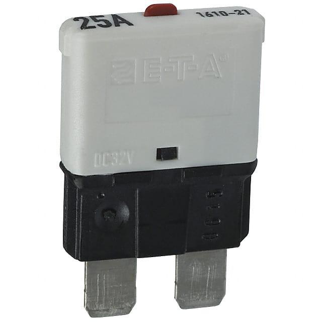 This is manufactured by E-T-A. The manufacturer part number is 1610-21-25A. It is assigned with possible HTSUS value of 8536.20.0020. The product is rohs3 compliant. It is approved by ul1500. In addition, it is reach unaffected. It is shipped in bulk. It is a type of thermal breaker. 32 v of DC voltage rating. It has a long 6 weeks standard lead time. Additionally, the product's output is 25a Its typical moisture sensitivity level is not applicable. The product is available in holder configuration. The product 1610, is a highly preferred choice for users. The product carries push to reset actuator. Is this product illuminated? none. It has equipped with 1 poles. The product is designated with the ear99 code number