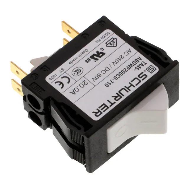 This is manufactured by Schurter Inc.. The manufacturer part number is 4430.0988. It is assigned with possible HTSUS value of 8536.20.0020. The product is rohs3 compliant. The product exhibits 240 v of AC voltage rating. In addition, it is reach unaffected. It is shipped in bulk. It is a type of thermal breaker. 60 v of DC voltage rating. It has a long 26 weeks standard lead time. Additionally, the product's output is 20a Its typical moisture sensitivity level is vendor undefined. The product is available in panel mount configuration. The product ta45, is a highly preferred choice for users. The product carries rocker actuator. It has equipped with 2 poles. The product is designated with the ear99 code number