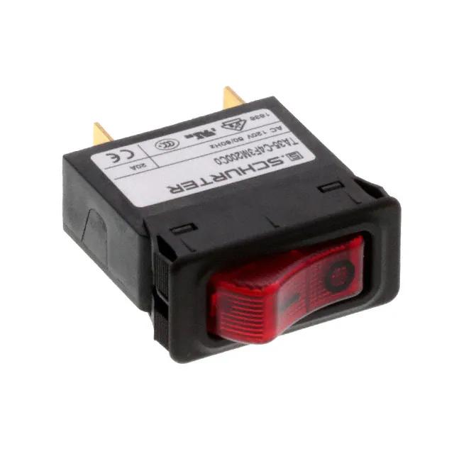 This is manufactured by Schurter Inc.. The manufacturer part number is 4435.0361. It is assigned with possible HTSUS value of 8536.20.0020. The product is rohs3 compliant. The product exhibits 240 v of AC voltage rating. In addition, it is reach unaffected. It is shipped in bulk. It is a type of thermal breaker. 32 v of DC voltage rating. It has a long 26 weeks standard lead time. Additionally, the product's output is 20a Its typical moisture sensitivity level is not applicable. The nominal illumination voltage of the product is 120v. The product is available in panel mount configuration. The product ta35, is a highly preferred choice for users. The product carries rocker actuator. Is this product illuminated? red. It has equipped with 1 poles. The product is designated with the ear99 code number