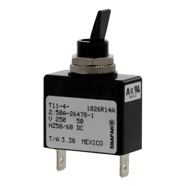 This is manufactured by Sensata-Airpax. The manufacturer part number is T11-4-2.50A-26478-1. It is assigned with possible HTSUS value of 8536.20.0020. The product is rohs compliant. It is shipped in bulk. It is a type of magnetic (hydraulic delay) breaker. It has equipped with 1 poles. It has a long 5 weeks standard lead time. Its typical moisture sensitivity level is 1 (unlimited). The product is available in panel mount configuration. The product snapak®, is a highly preferred choice for users. The product carries toggle actuator. Moreover, it corresponds to t11-4, a base product number of the product. The product is designated with the ear99 code number